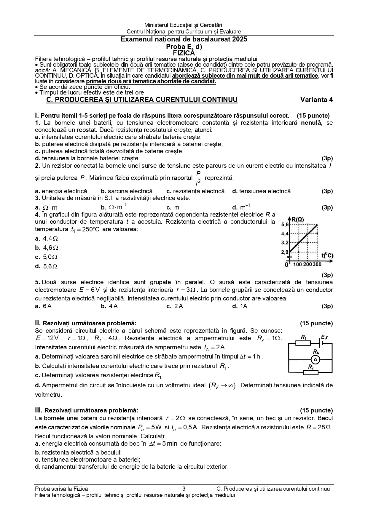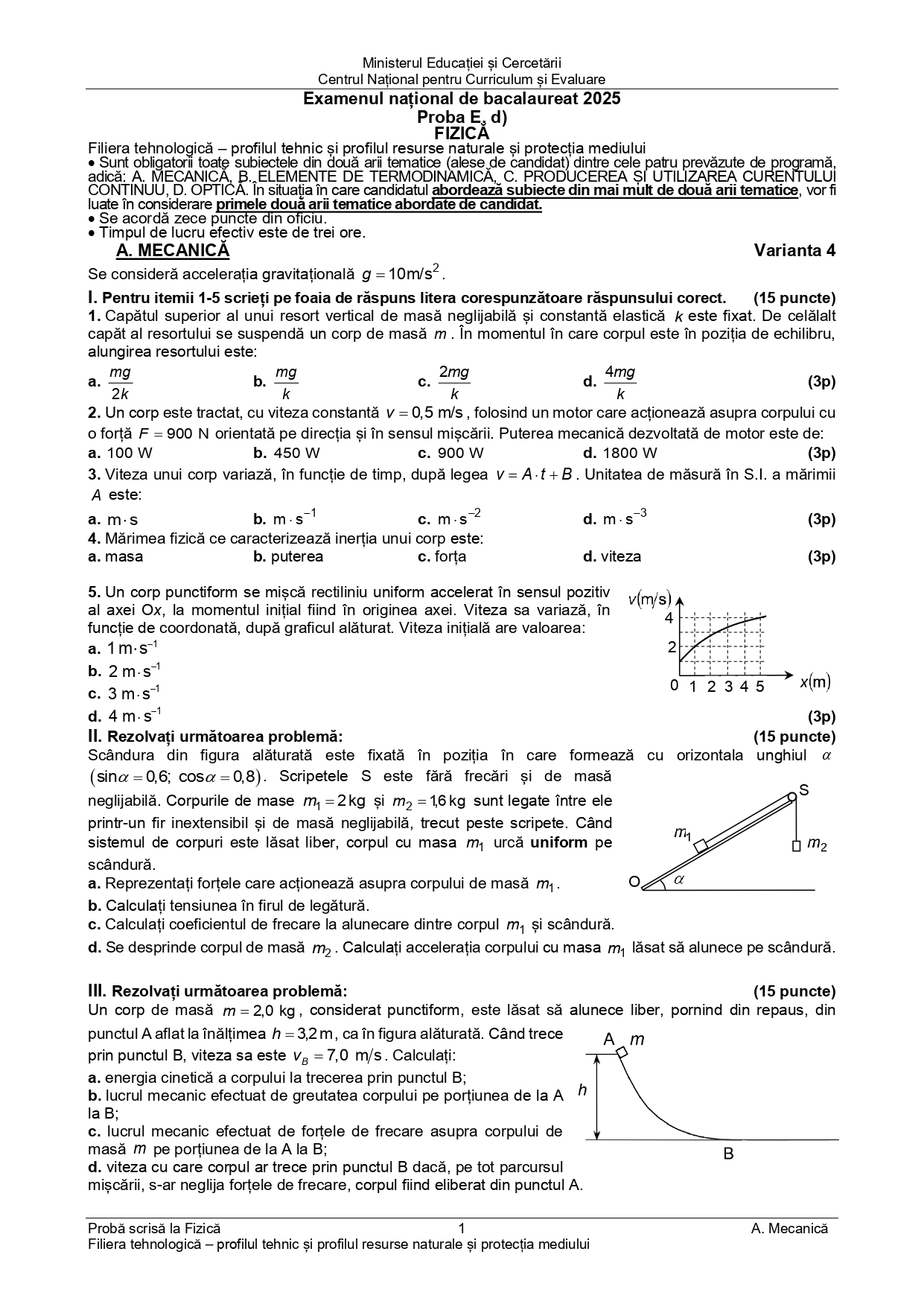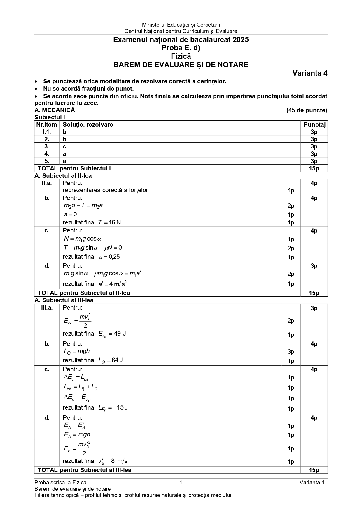 DOCUMENT DESCARCĂ Subiect Bacalaureat 2025 Toamnă – Fizică tehnologic: