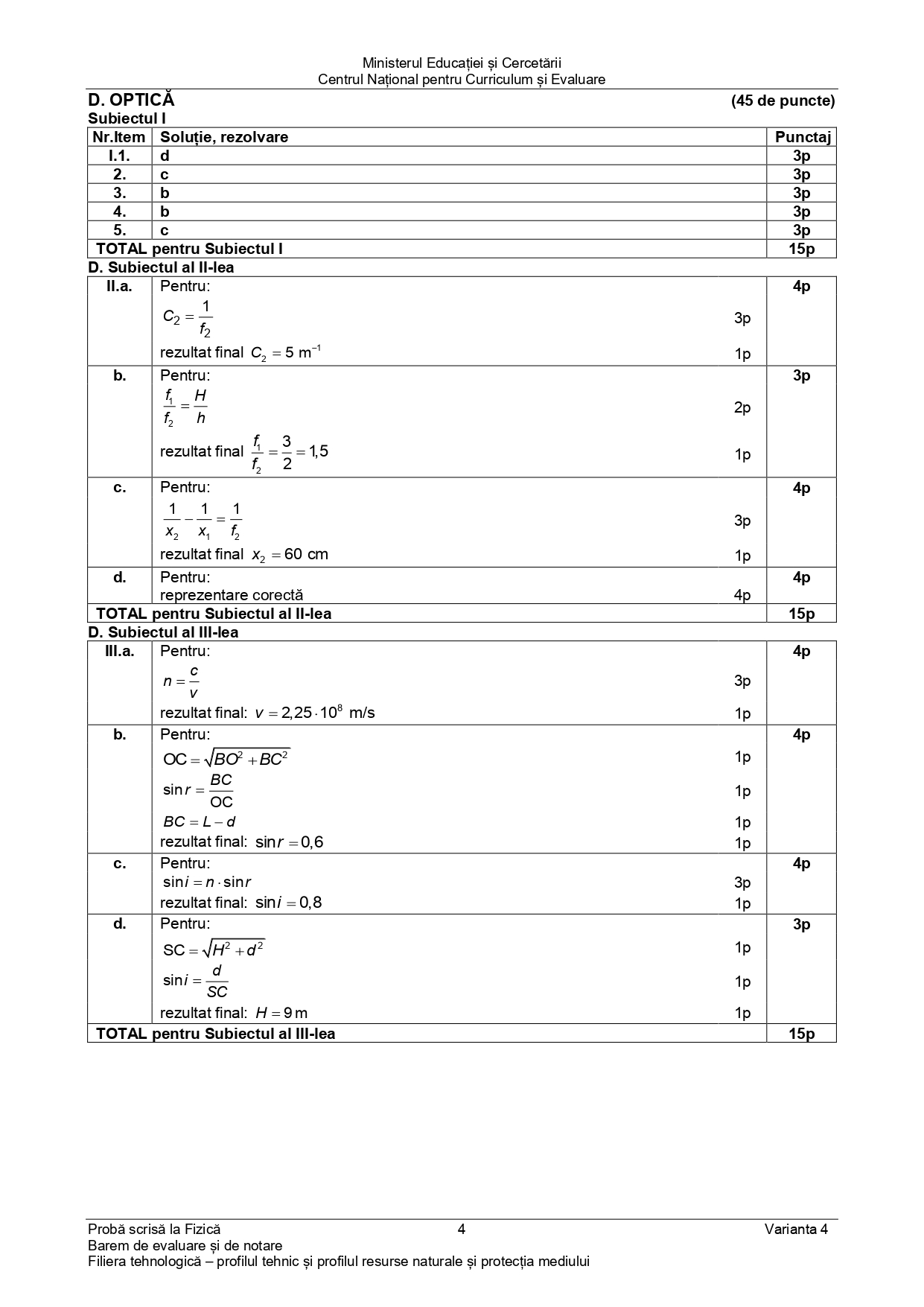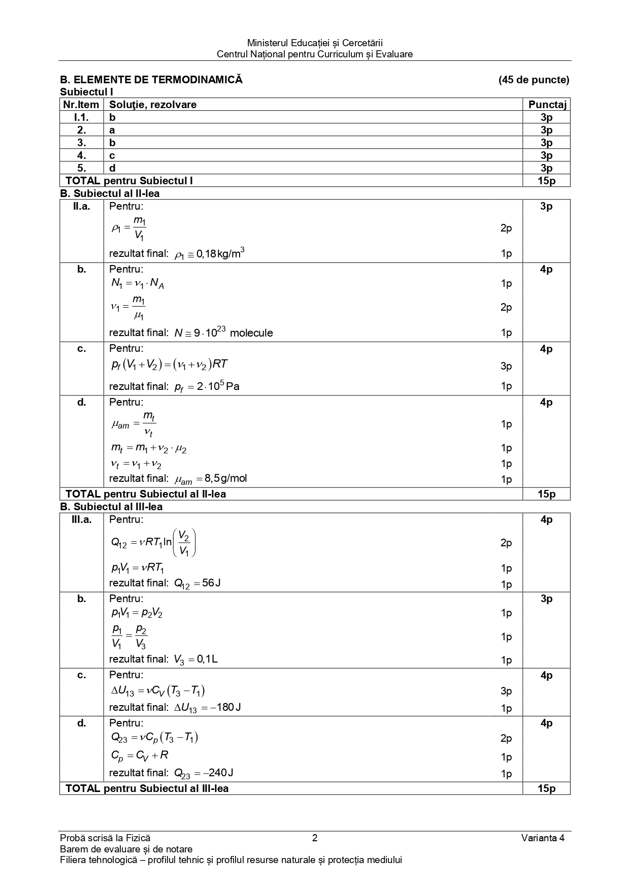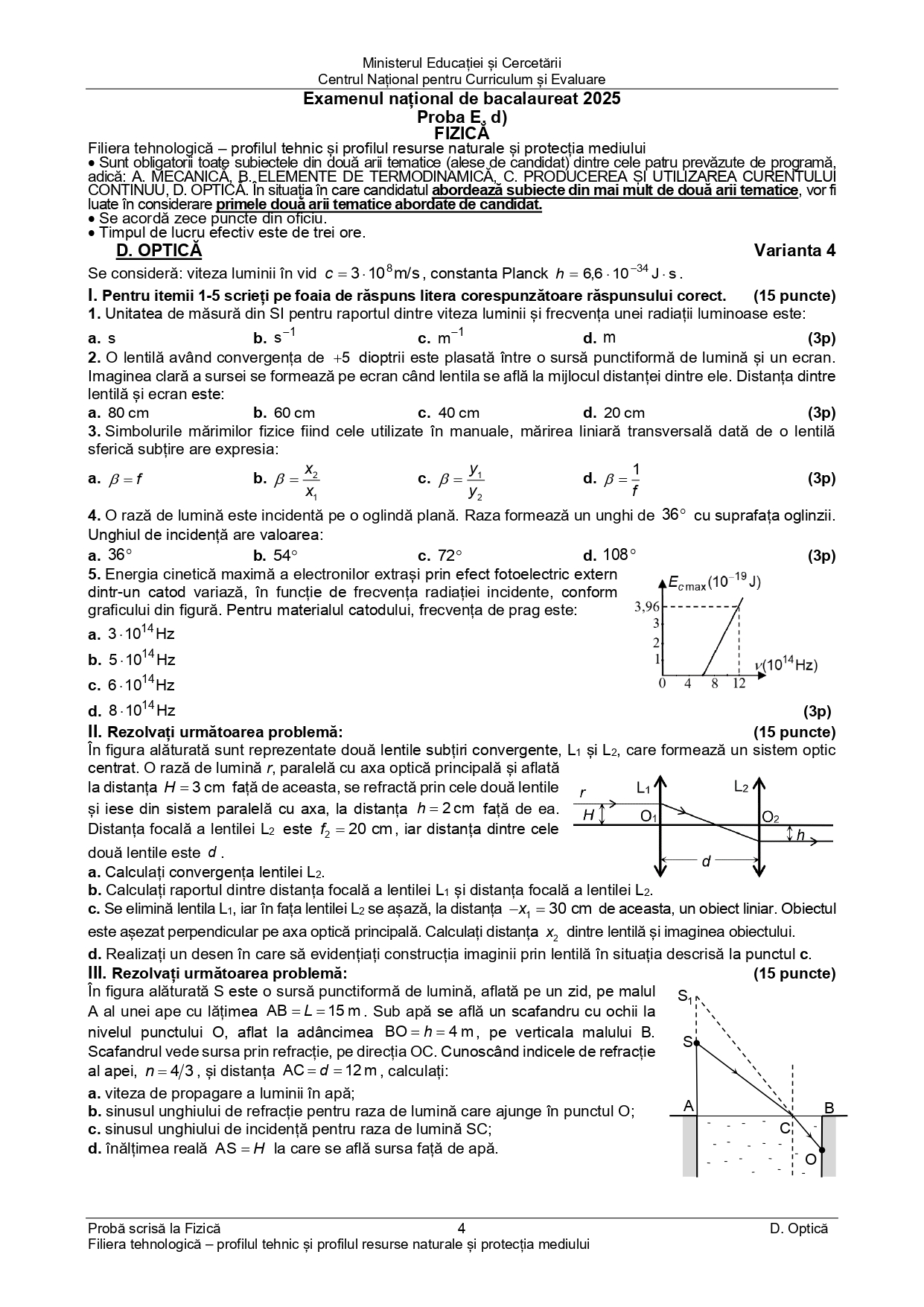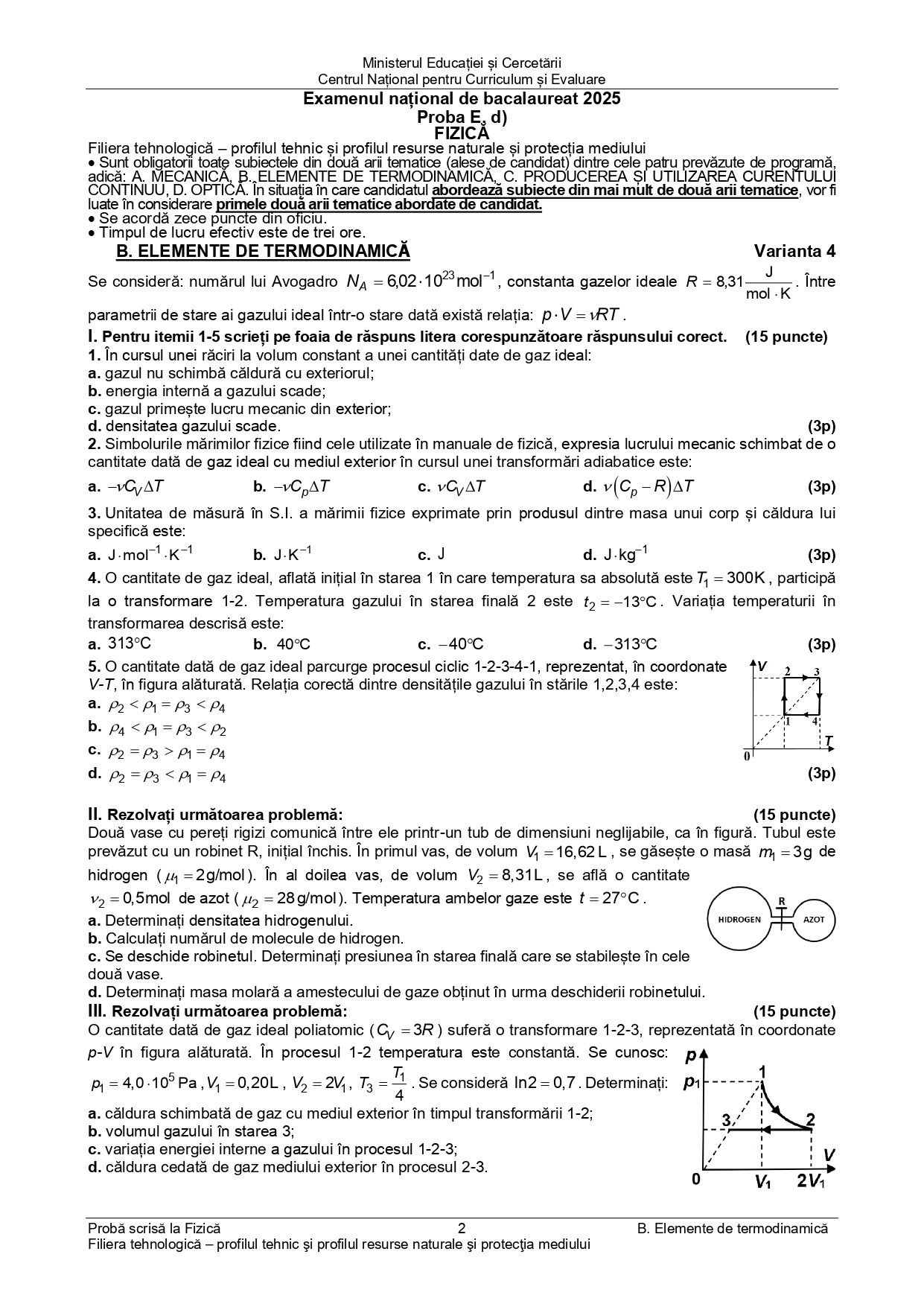 DOCUMENT DESCARCĂ Subiect Bacalaureat 2025 Toamnă – Fizică tehnologic: