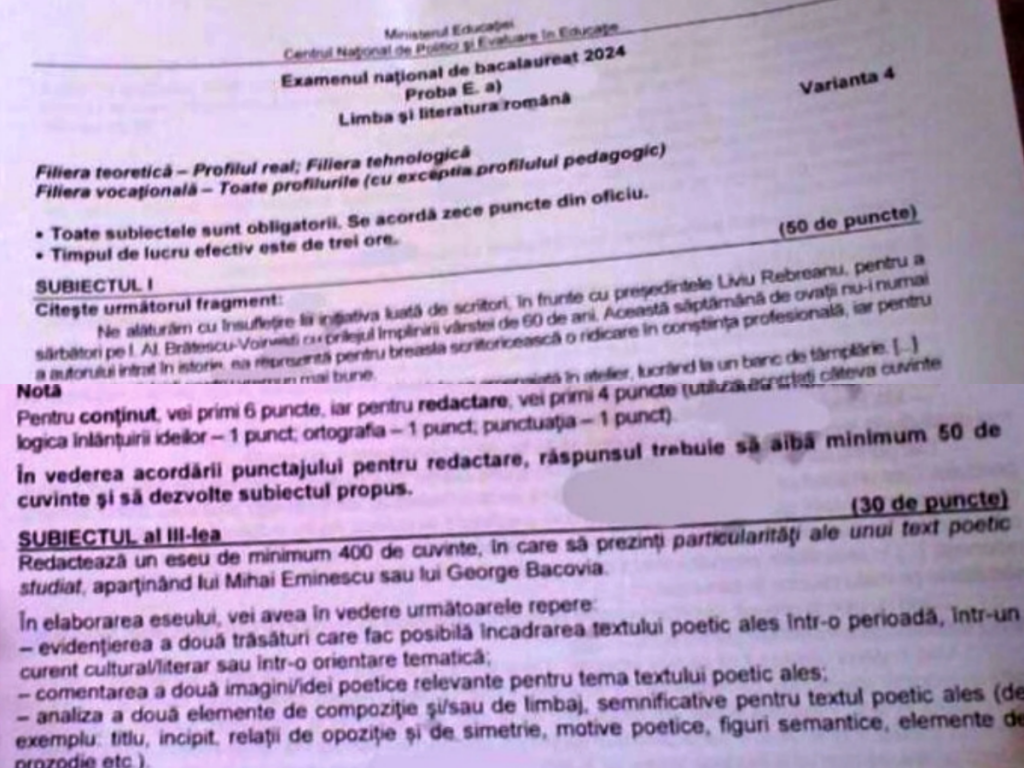 Iată subiectele de la proba scrisă de Limba română de la Bacalaureat 2024, sesiunea de toamnă, publicate de stirileprotv.ro: