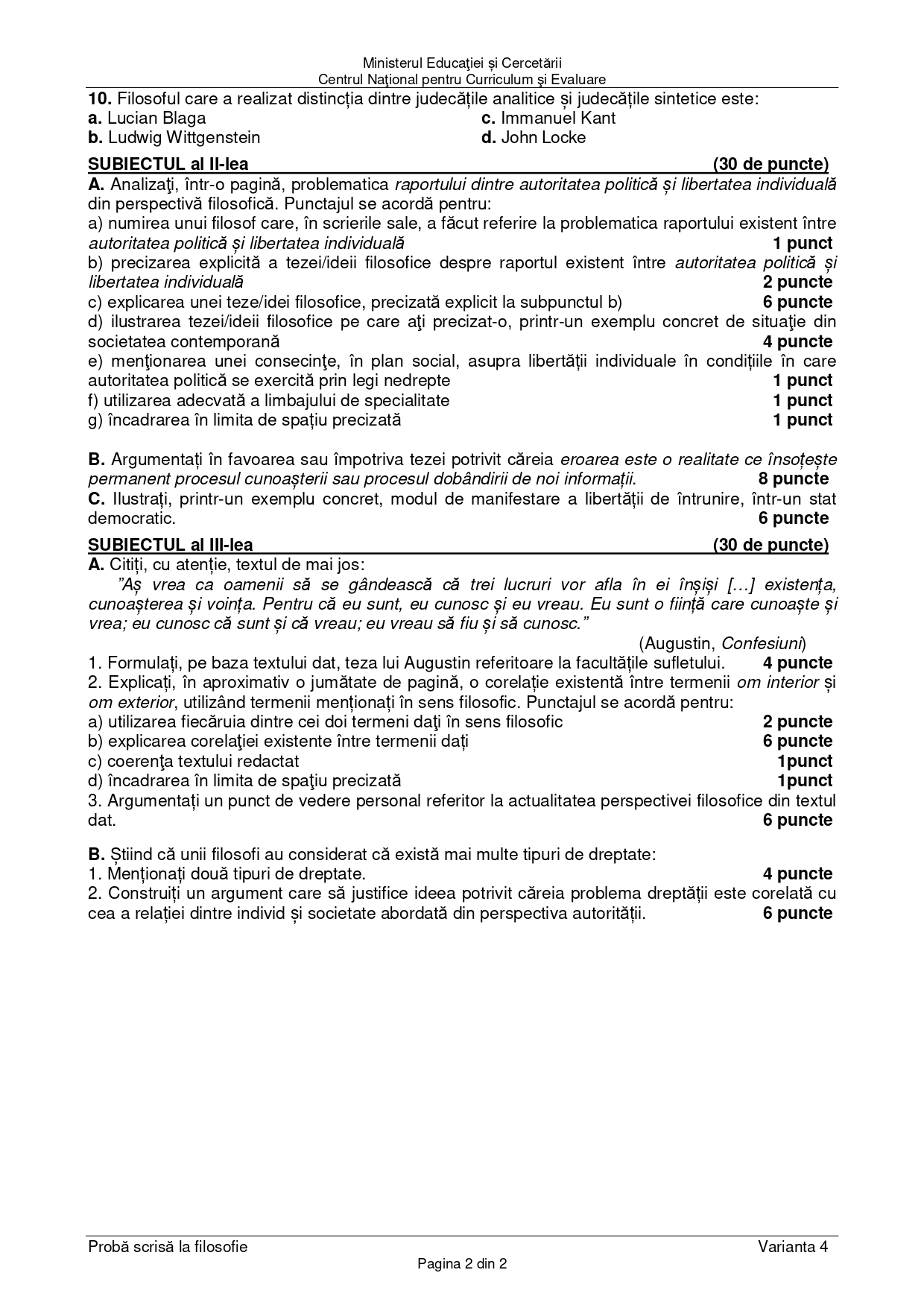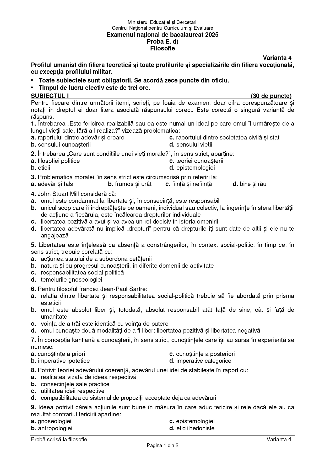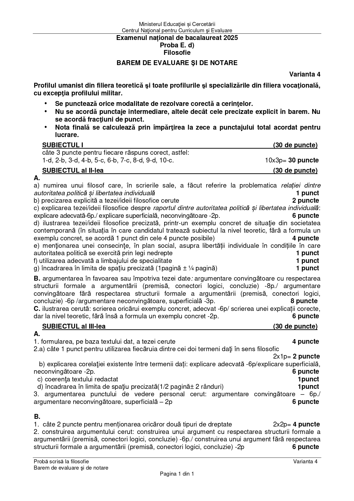 OCUMENT DESCARCĂ Subiect Bacalaureat 2025 Toamnă – Filosofie: