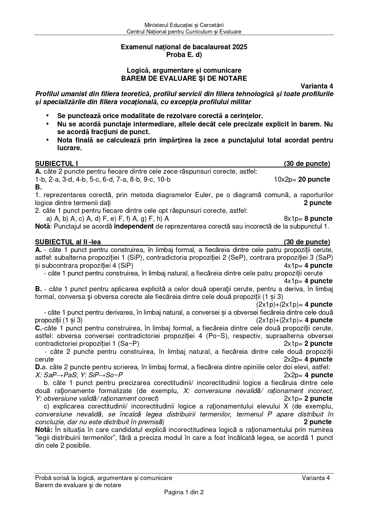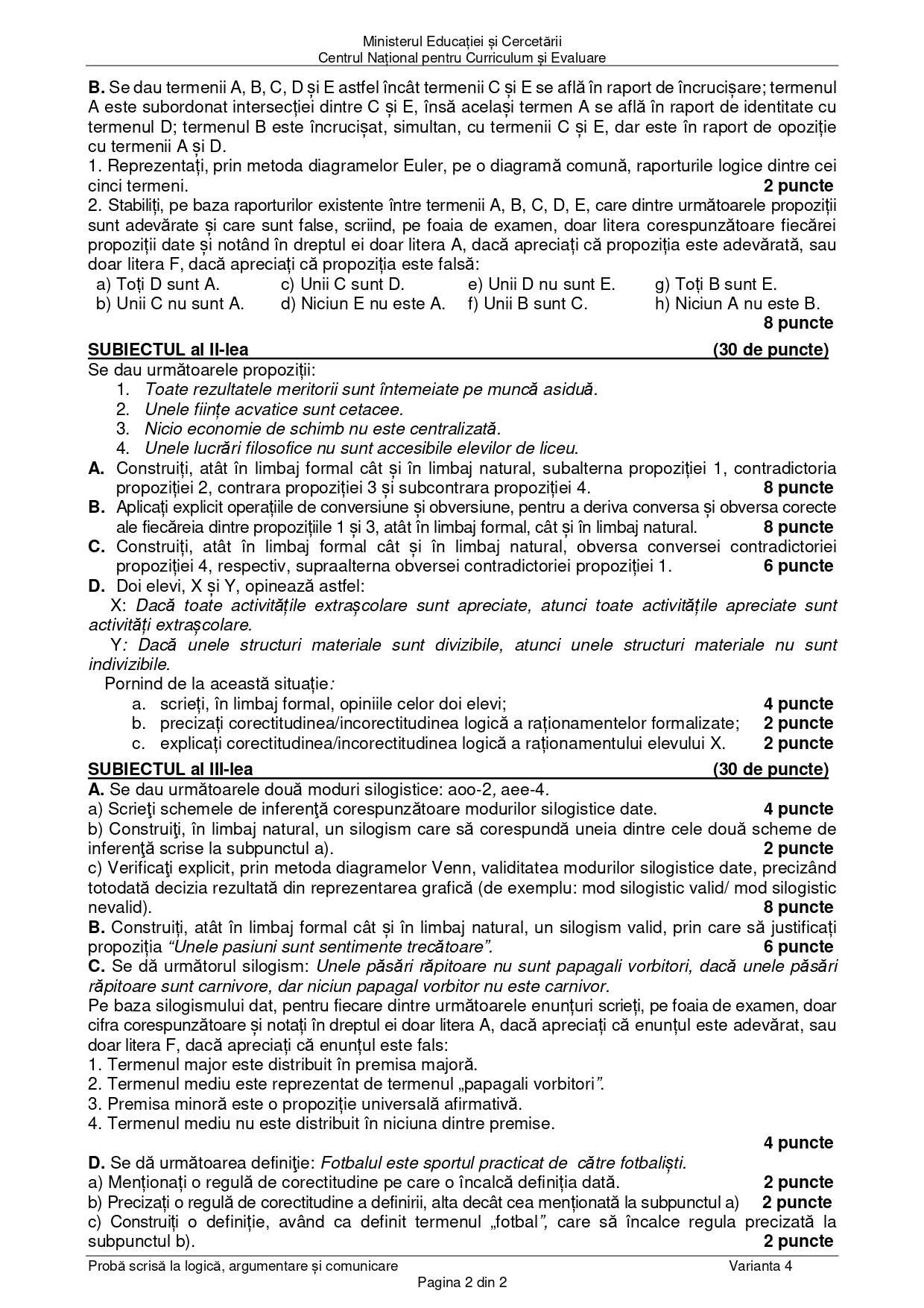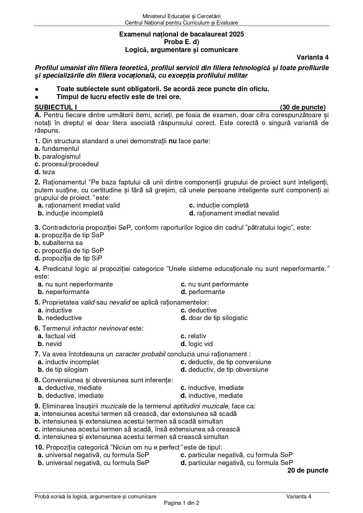 DOCUMENT DESCARCĂ Subiect Bacalaureat 2025 Toamnă – Logică și argumentare: