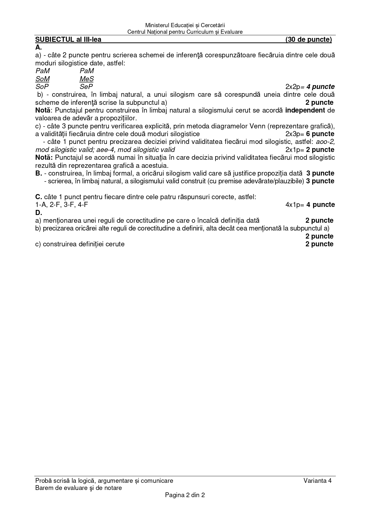 - subiecte și bareme BAC 2024 Logică, Psihologie, Sociologie și Filosofie