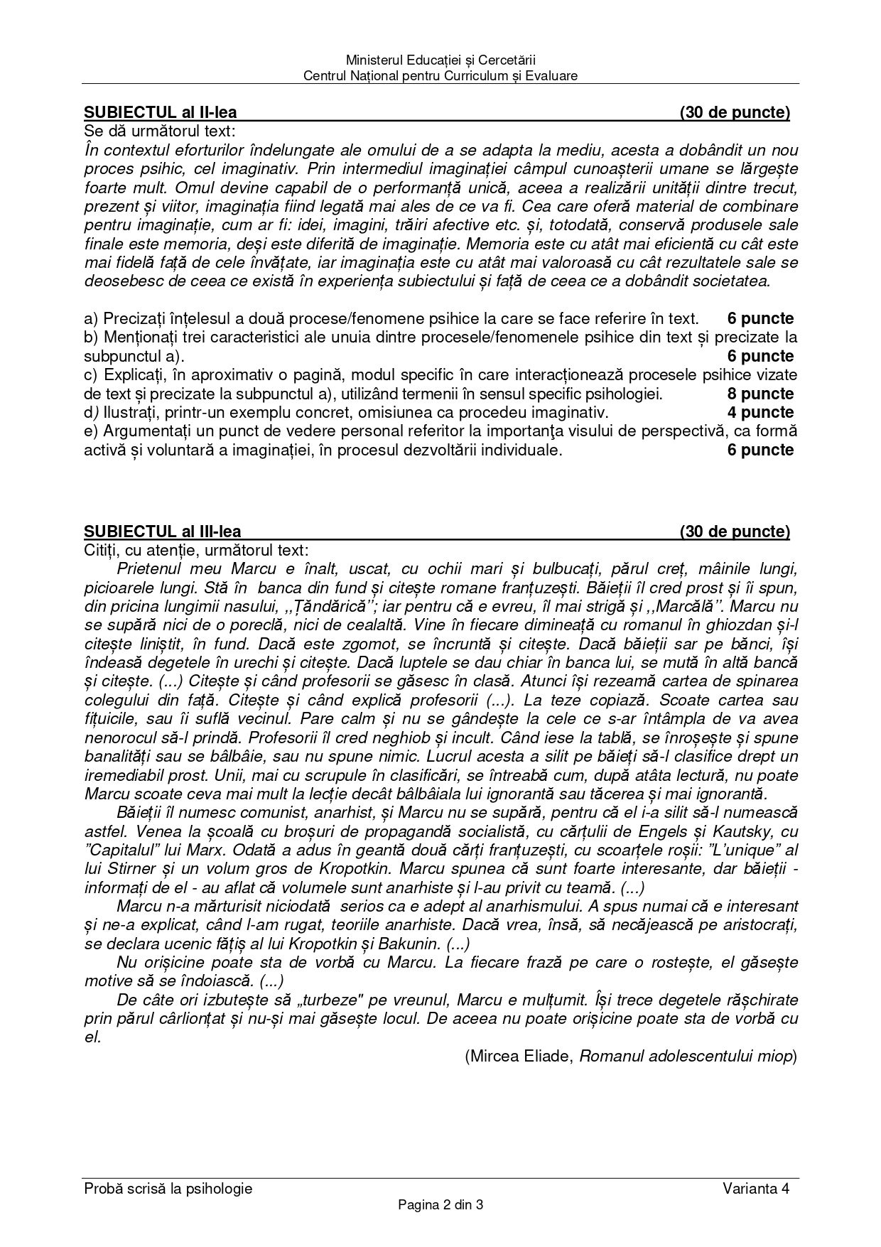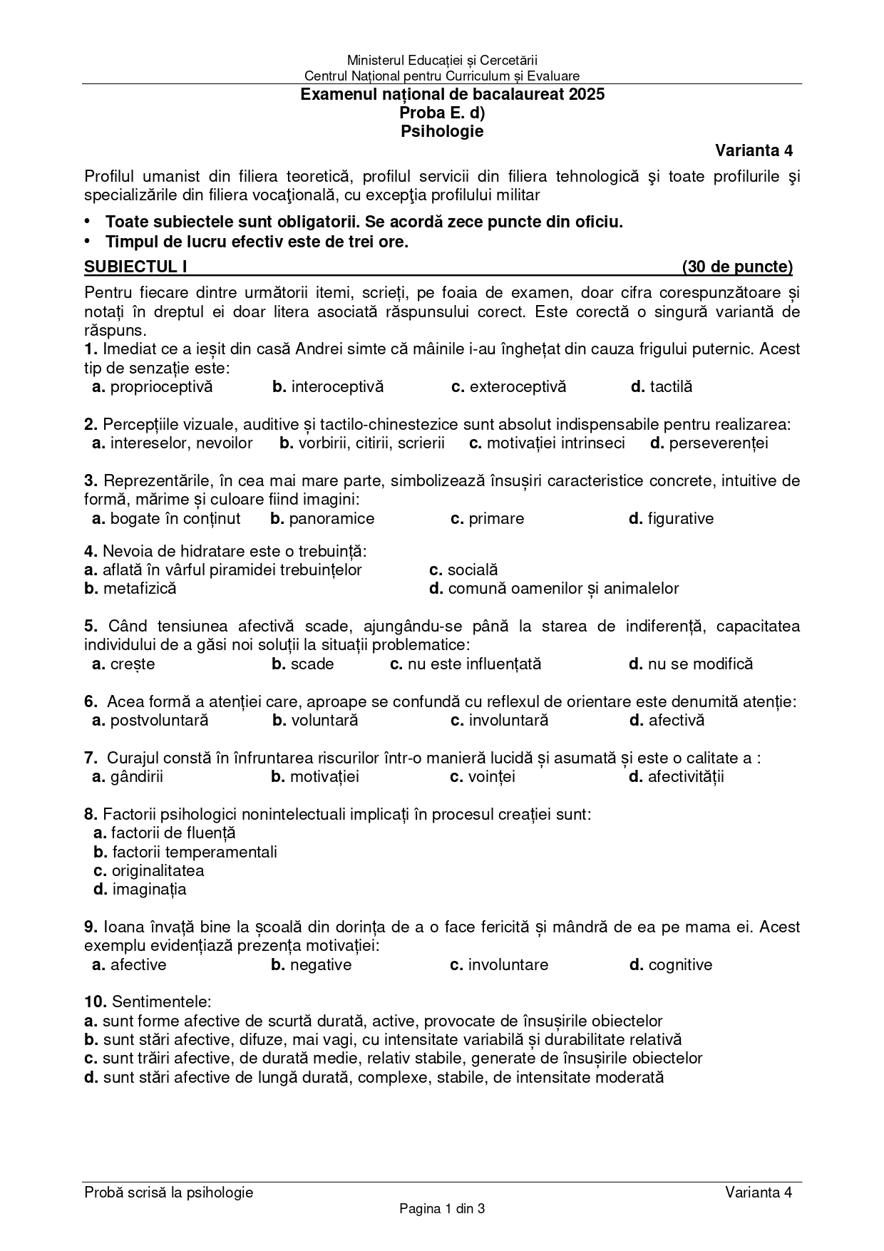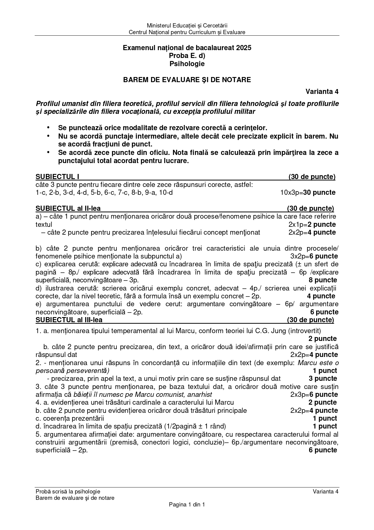 DOCUMENT DESCARCĂ Subiect Bacalaureat 2025 Toamnă – Psihologie: