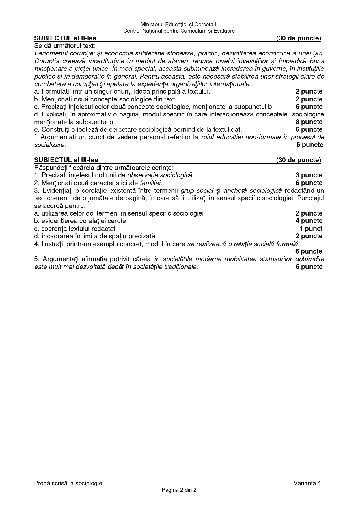 OCUMENT DESCARCĂ Subiect Bacalaureat 2025 Toamnă – Sociologie: