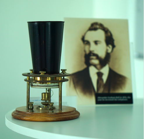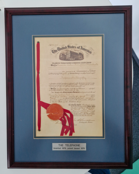Obiectul numit „primul tranzistor” este în custodia Universității din Illinois Urbana-Champaign, unde John Bardeen a deținut un post didactic, alături de alte artefacte rămase de la acesta. Există replici autorizate, produse de continuatorul Bell Laboratories, astăzi Nokia Bell Labs, din care una o găsiți în expoziția din Timișoara. Pe lângă acesta, mai puteți admira o reconstrucție a primului telefon, dar de data aceasta împreună cu originalul diplomei patentului US174465A emis pe numele lui Alexander Graham Bell. O puteți compara cu imaginea de pe Wikipedia. Dacă numele de Bell vă sună oarecum familiar e pentru că, pe lângă alte moșteniri pe care le-a lăsat omenirii Alexander Graham Bell, este și decibelul.