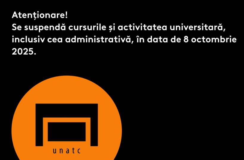 Universitatea Națională de Artă Teatrală și Cinematografică „I.L. Caragiale” (UNATC) din București a anunțat suspendarea integrală a cursurilor și a activităților universitare, inclusiv cele administrative, în data de 8 octombrie 2025, din cauza codului roșu de ploi torențiale emis de Administrația Națională de Meteorologie pentru Capitală și județul Ilfov.