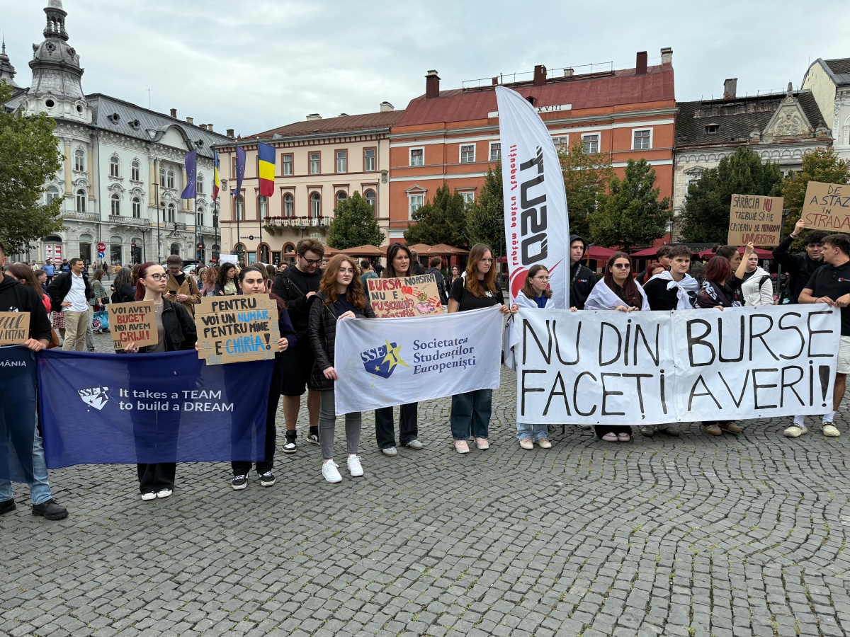 Reprezentanți ai profesorilor, elevilor și studenților au participat, joi, la un protest față de măsurile guvernului în educație, manifestație desfășurată în Piața Unirii din Cluj-Napoca, potrivit Cluj24.ro. Din imaginile transmise de publicație reiese că la miting au luat parte câteva sute de persoane. Potrivit unui comunicat al Alianței organizațiilor studențești (ANOSR), studenții intenționează să continue protestele „în toate centrele universitare”, dacă măsurile din Legea 141/2025 privind educația nu sunt eliminate.