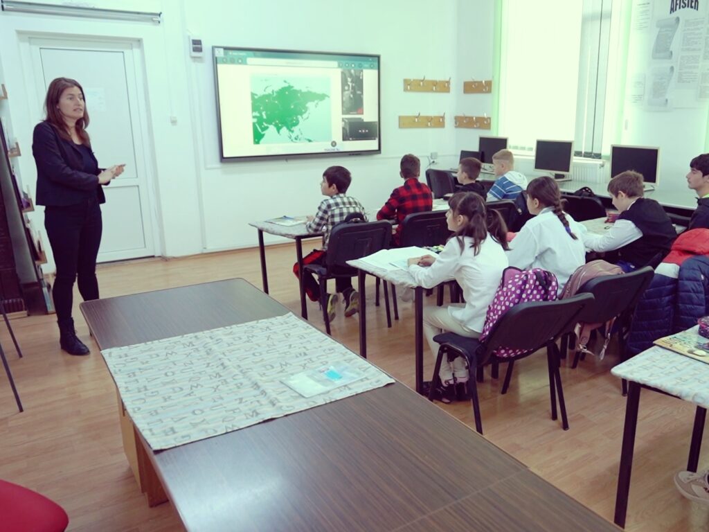 Orele de Geografie sunt fereastra elevilor către Lume. Acum, când școala lor a fost dotată cu o tablă interactivă performantă, elevii au văzut acest lucru și mai mult. Profesoara lor, Elena Nistor, de la Școala Gimnazială „prof. Vasile Gherasim”, din comuna Țibucani, județul Neamț, îi provoacă oră de oră cu aplicații care să pună la lucru potențialul instrumentelor digitale.