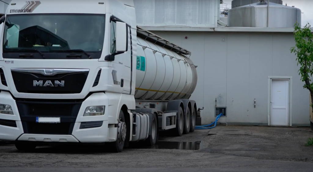 La fermă, care în cazul nostru este tehnologizată printr-o investiție cu fonduri europene, vacile au parte de condiții foarte bune, ca să poată produce lapte de bună calitate. După ce vacile mănâncă și se odihnesc, ajung în zona de muls, unde totul se face robotizat, la fel ca 90% dintre operațiunile din fermă. Laptele muls este colectat într-un tanc uriaș, de unde îl preiau cisternele speciale. Camioanele astfel încărcate merg de la fermă la fabrica de lactate, după ce adună laptele de la mai multe ferme, zi de zi.