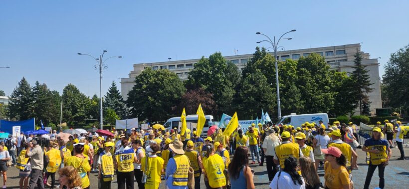 Federațiile sindicale din educație au reluat, miercuri, protestele față de Legea Bolojan, în fața sediului Ministerului Educației și Cercetării, iar un miting este plănuit, de la ora 12.00, și în Piața Victoriei. La protestul declanșat la MEC, manifestanții scandau din nou „Demisia”, în cea de-a 22-a zi a pichetărilor declanșate pe 30 iulie.