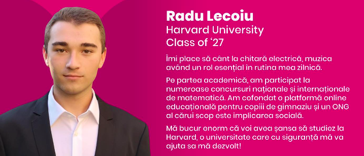 Radu Lecoiu, admis la Harvard University: sunt extrem de recunoscător pentru tot ajutorul pe care mi l-a oferit consultantul Youni, Ana, de la structurat eseuri la pregătire pentru SAT sau Interviuri.